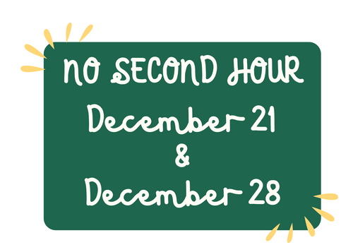 There will be no second hour on December 21 and December 28. Parents of Roots children should plan to pick up their child directly after the morning service.